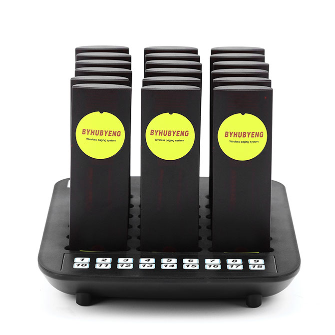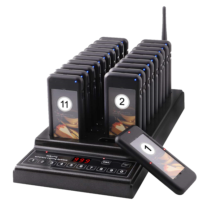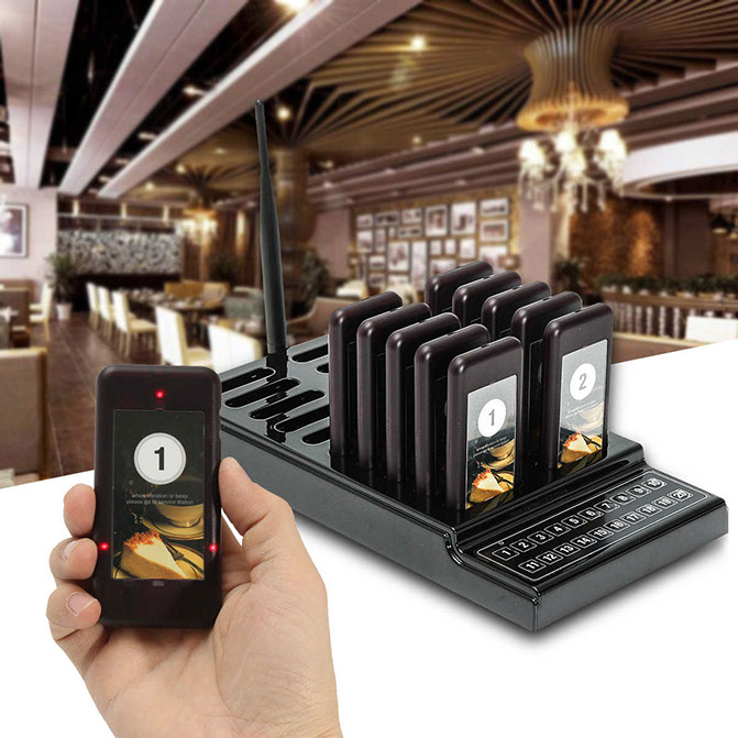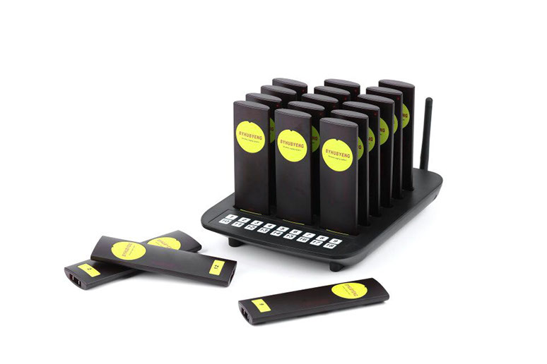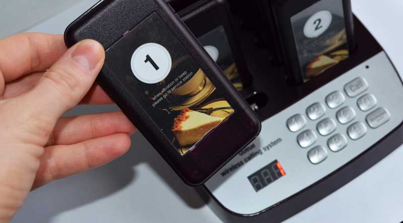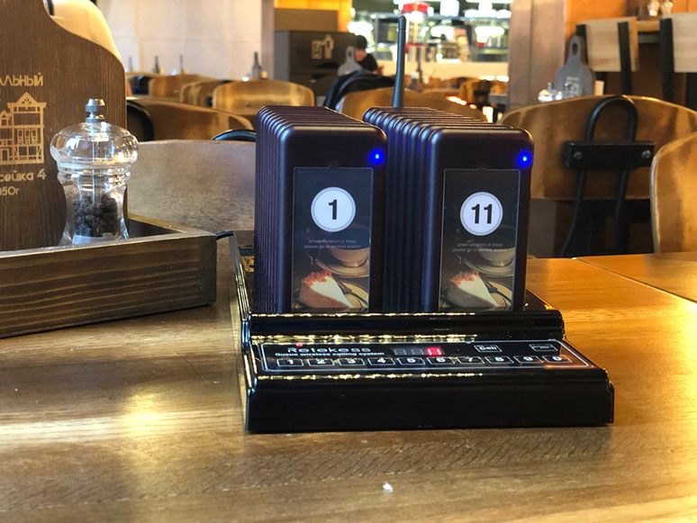 Пейджеры помогают сообщать клиентам ресторанов, кафе, фастфуда о готовности заказа. Комплект включает в себя 16 пейджеров и базовую станцию. Для каждого пейджера предусмотрен свой номер. Кассир при оформлении заказа выдает клиенту пейджер, записывая его номер на своем чеке. Когда заказ готов, кассир включает на станции кнопку в соответствии с номером. Биппер создает вибрацию и подает звуковой и световой сигналы, сообщающие о необходимости забрать заказ на кассе.